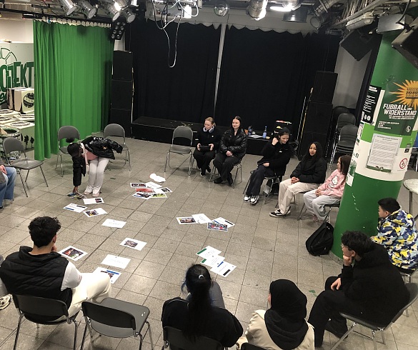 Gemeinsam mit den Pädagog:innen des Lernzentrums setzten sie sich mit verschiedenen Formen von Gewalt auseinander – physisch, psychisch und strukturell – und diskutierten über faires Verhalten im Alltag und im Fußballstadion. Besonders spannend fanden die Schüler:innen die interaktiven Übungen, bei denen sie selbst entscheiden konnten, wie „richtig“ oder „falsch“ bestimmte Handlungen sind.
