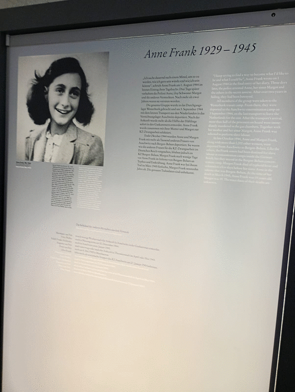 Auch das Museum war ein wichtiger Teil unseres Besuchs. Dort sahen wir zahlreiche Exponate, darunter Dokumente, persönliche Gegenstände der Häftlinge sowie Kleidungsstücke. Besonders bewegend waren die Grabstätten von Anne Frank und ihrer Schwester Margot Frank. In diesem Moment wurde uns bewusst, dass hinter jeder Geschichte ein menschliches Schicksal steht.